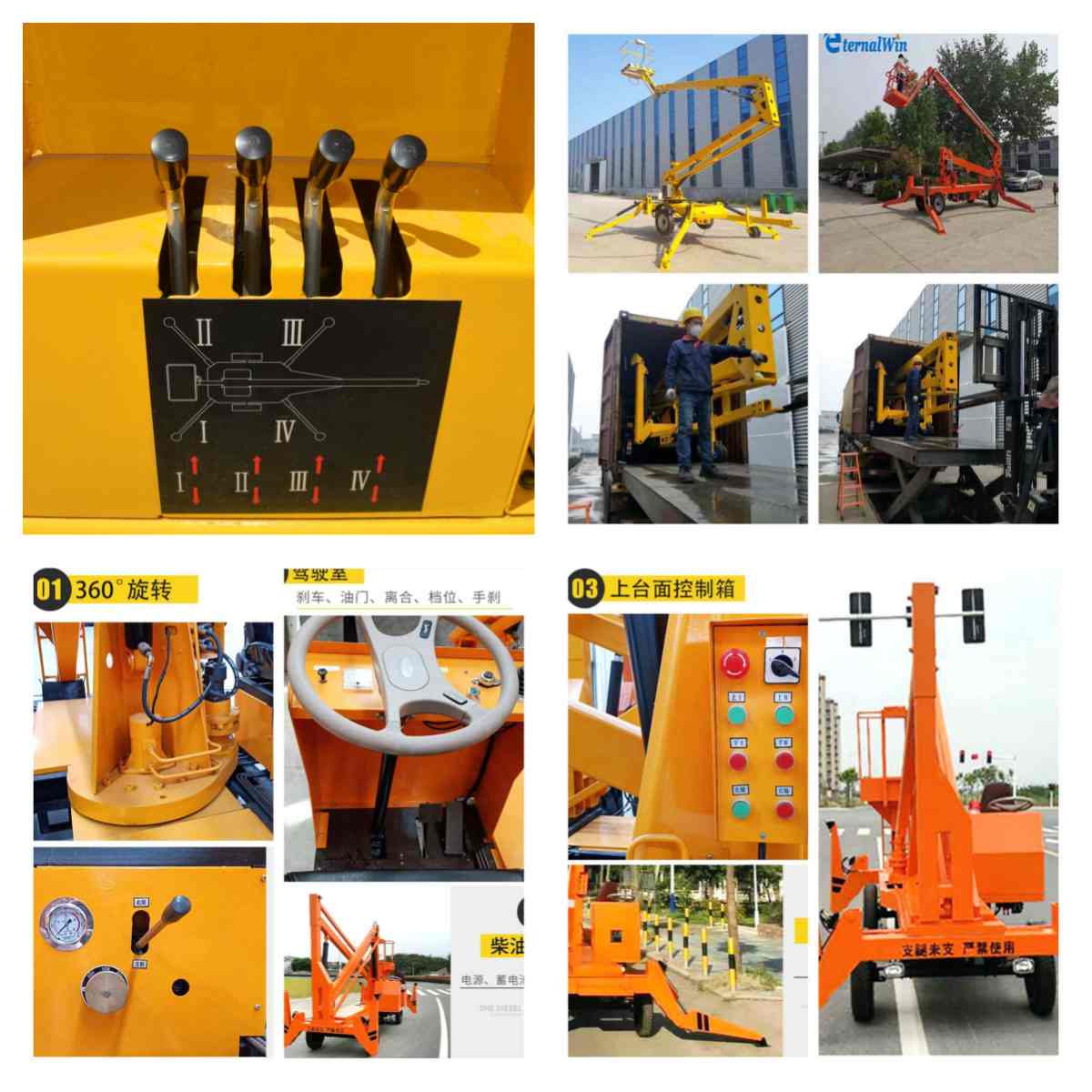 The traction crank arm lift is suitable for various rough terrains in the field, and has a wide range of space operations. It is mainly used in construction, bridge construction, shipbuilding, airports, mines, ports, terminals, communication and power facilities, and engineering machinery and equipment for outdoor advertising.